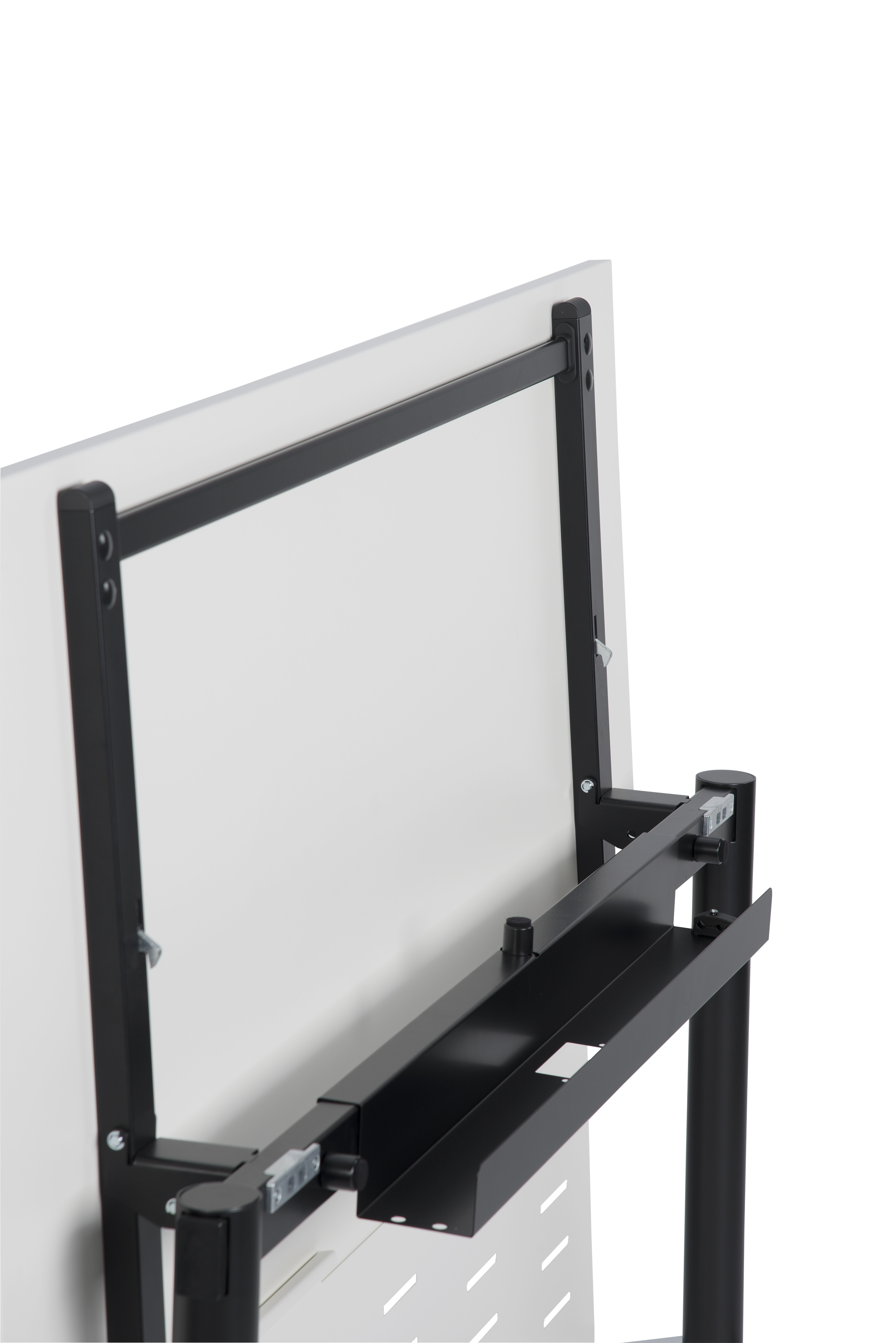 Gestell Stahl beschichtet schwarz, Fussausleger Stahl T-Profil beschichtet.